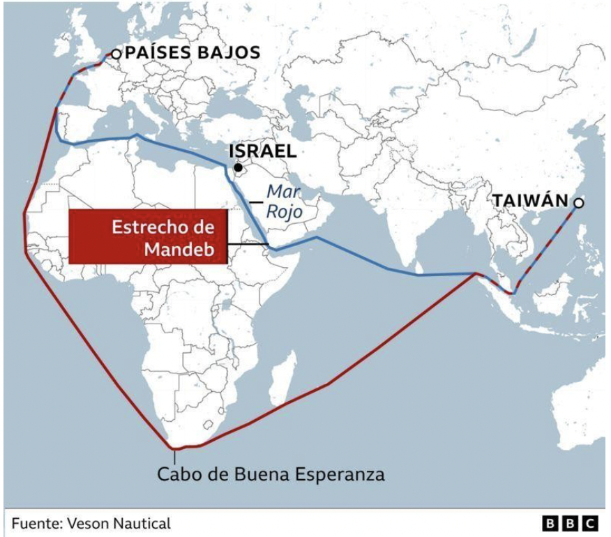 Las principales Navieras que han visto afectada la navegación por el Mar Rojo son Mediterranean Shipping Company (MSC), la petrolera BP, las navieras chinas Cosco, OOCL y Evergreen Marine, la francesa CMA, la danesa Maersk y la alemana Hapag-Lloyd.